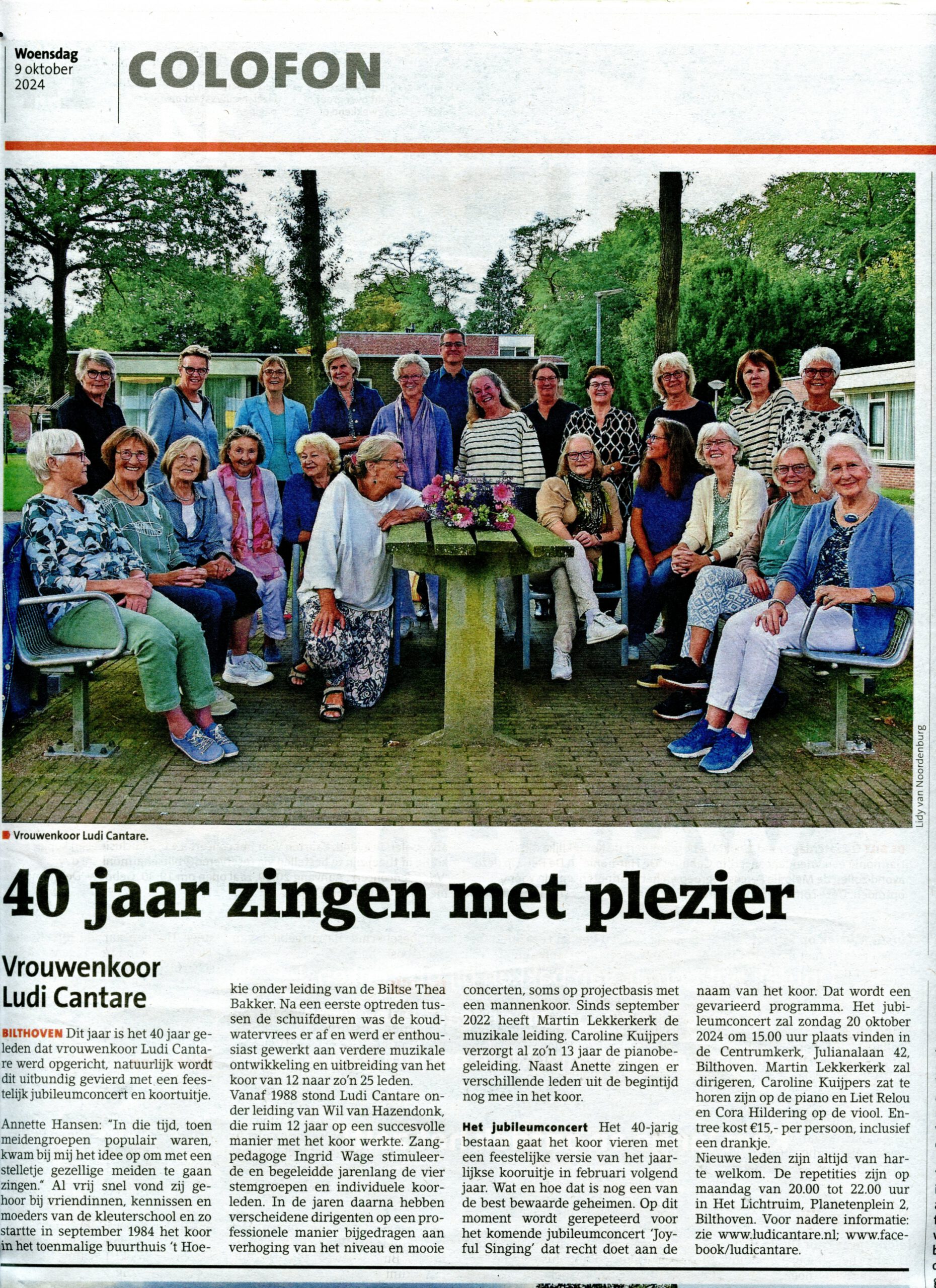 Vrouwenkoor Ludi Cantare uit Bilthoven/ De Bilt bestaat in 2024/25, 40 jaar.